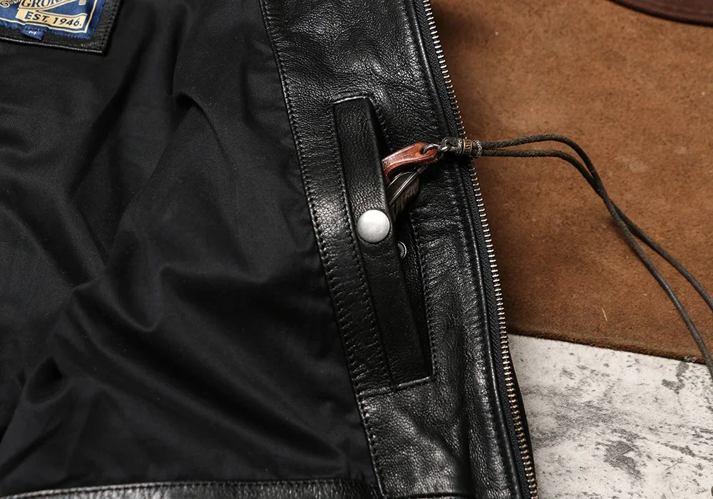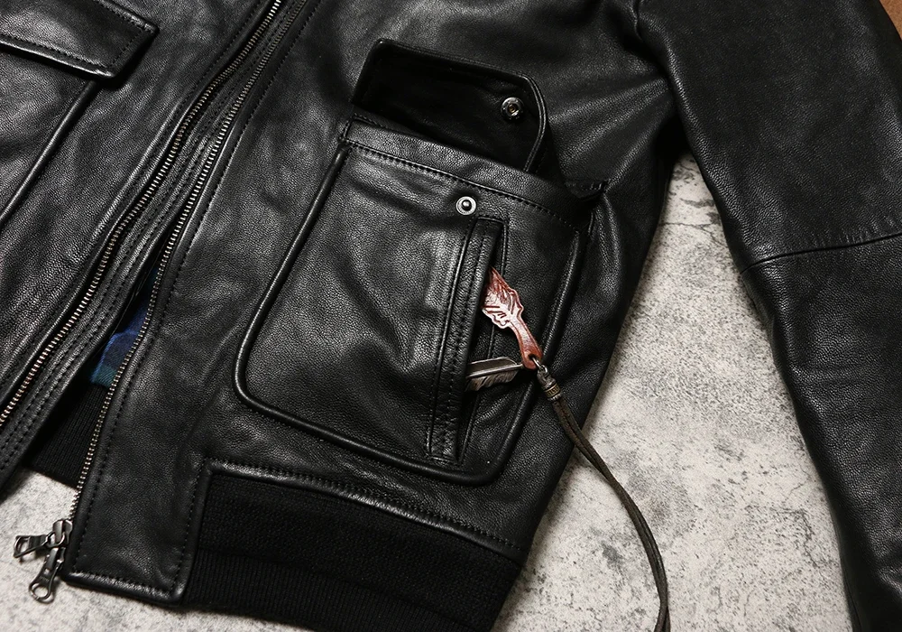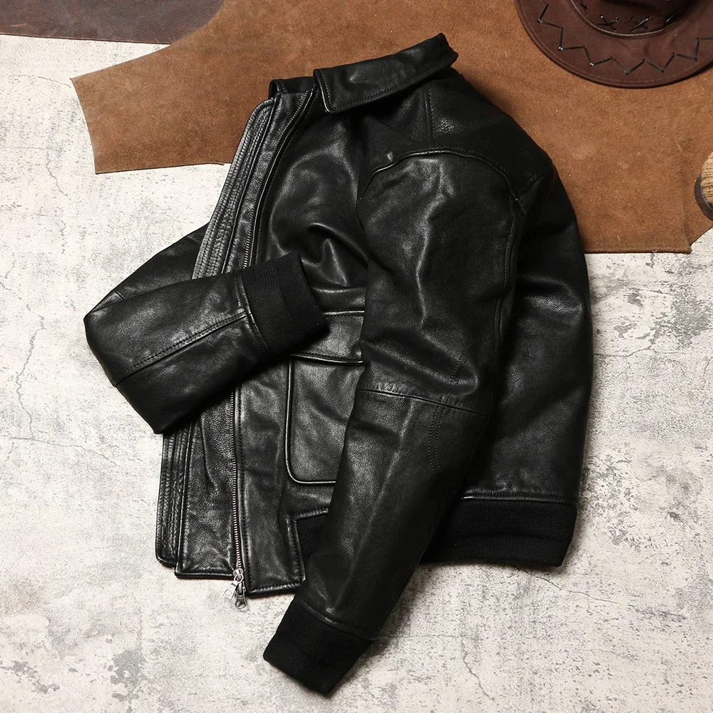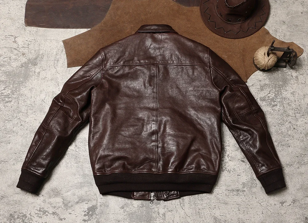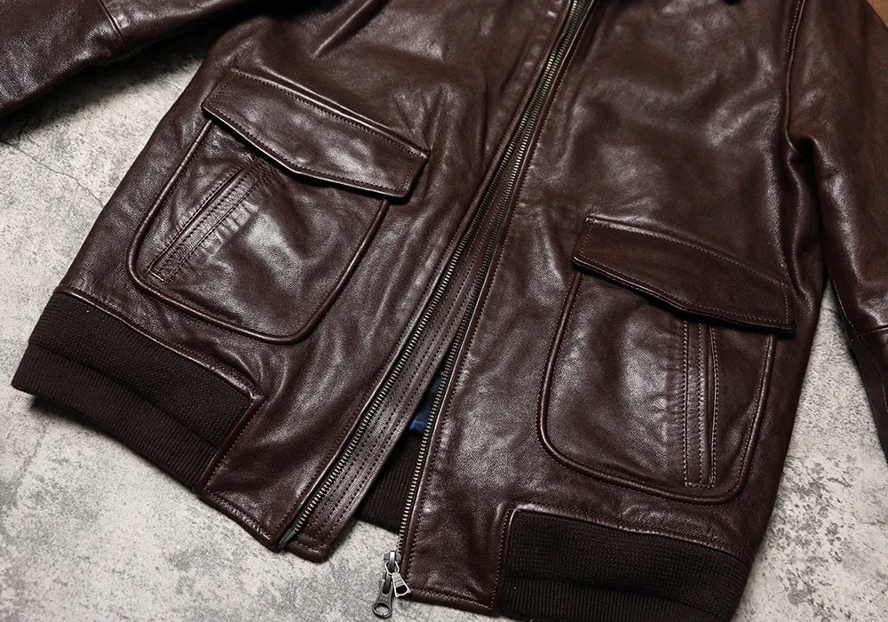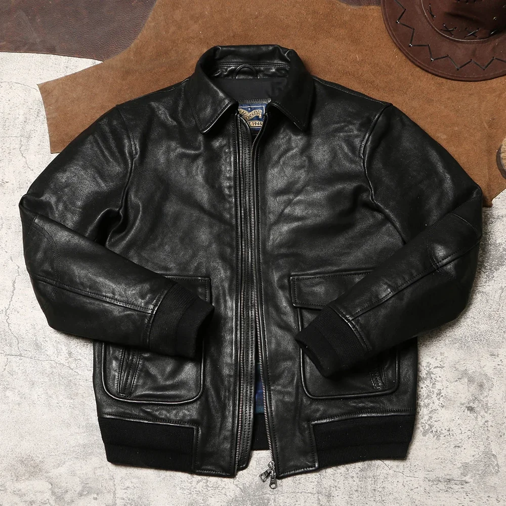 Genuine Leather A2 Leather Jacket Wax Dyed Unpainted Goat Skin Jacket for Men and Women's Racing, Same Style Flying Suit