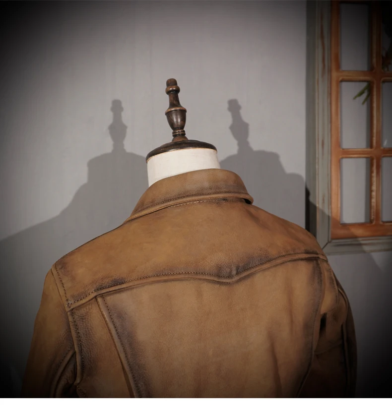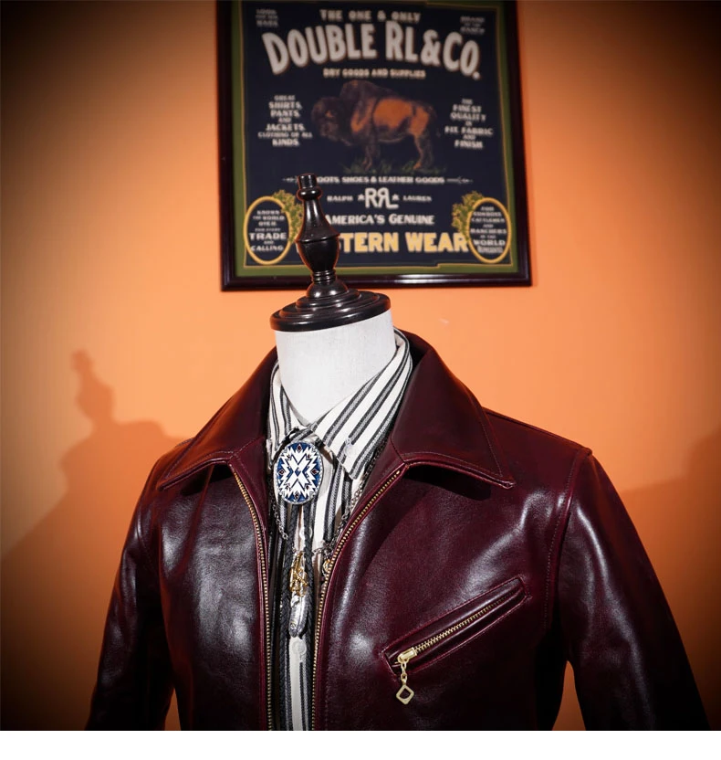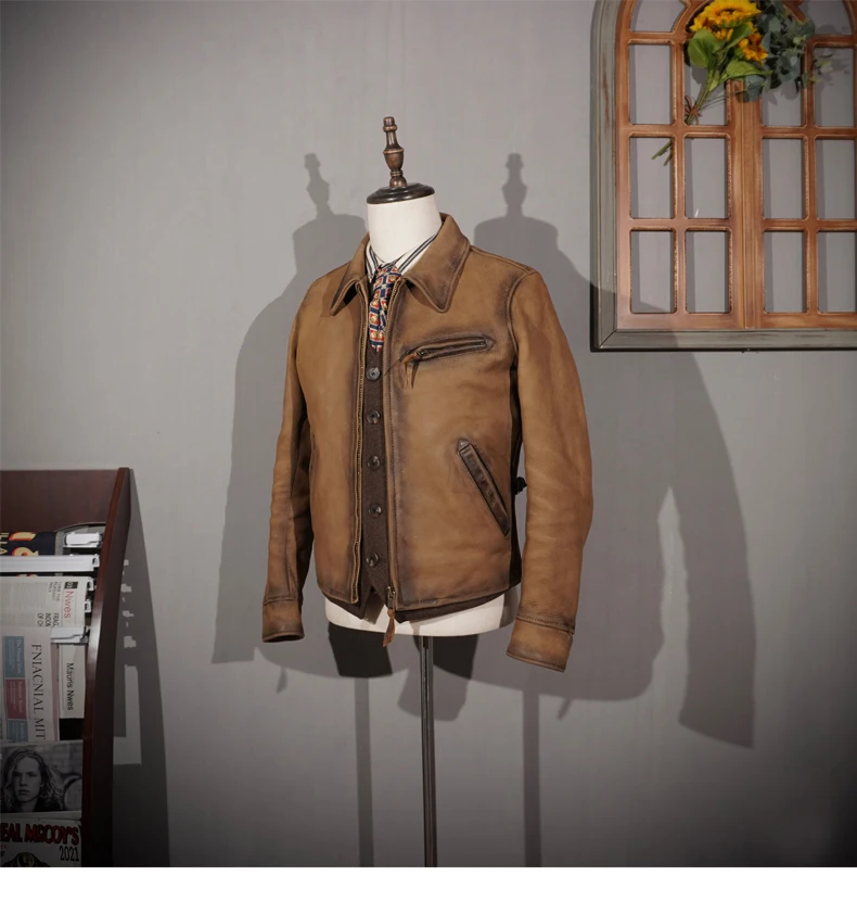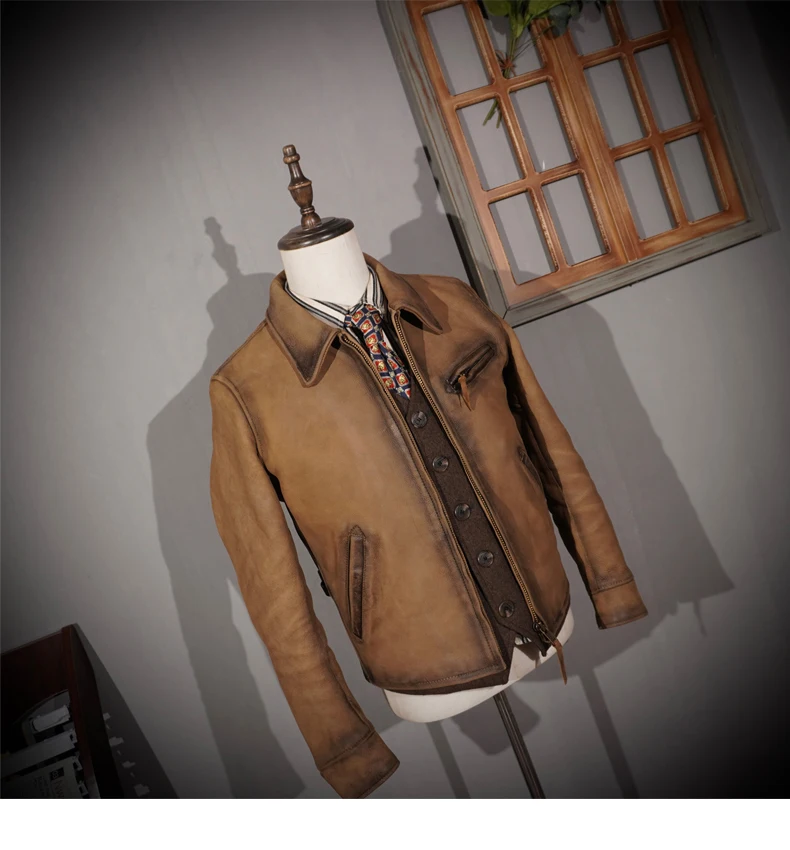 Heavy Classic 1930s Vegetable Tanning Japanese Horseskin Leather Leather Motorcycle Jacket Men's American Lapels