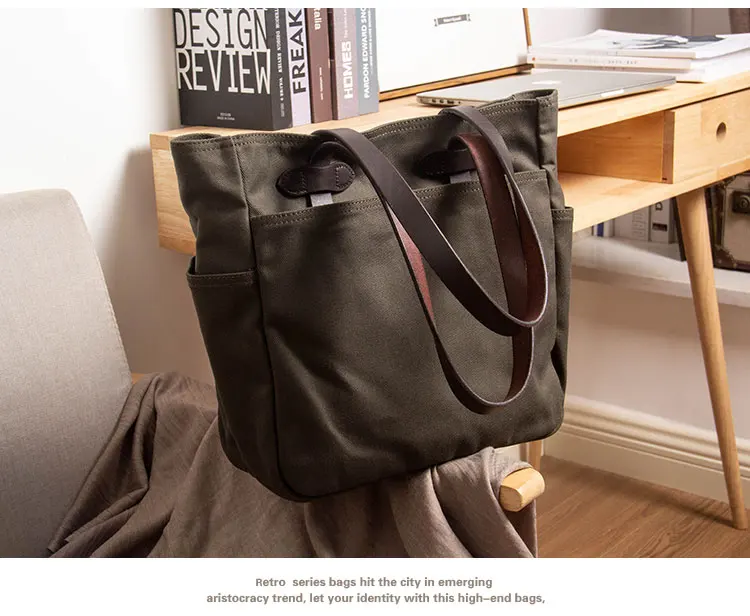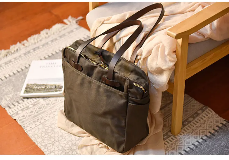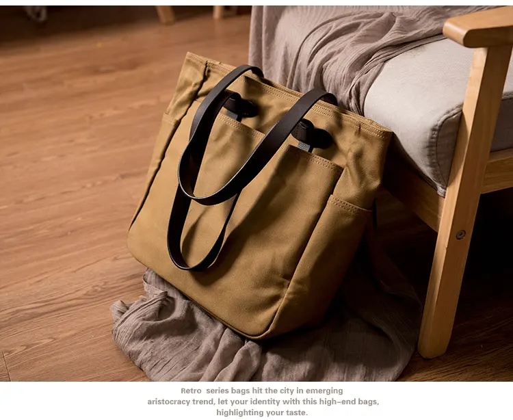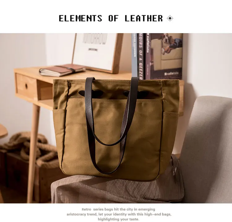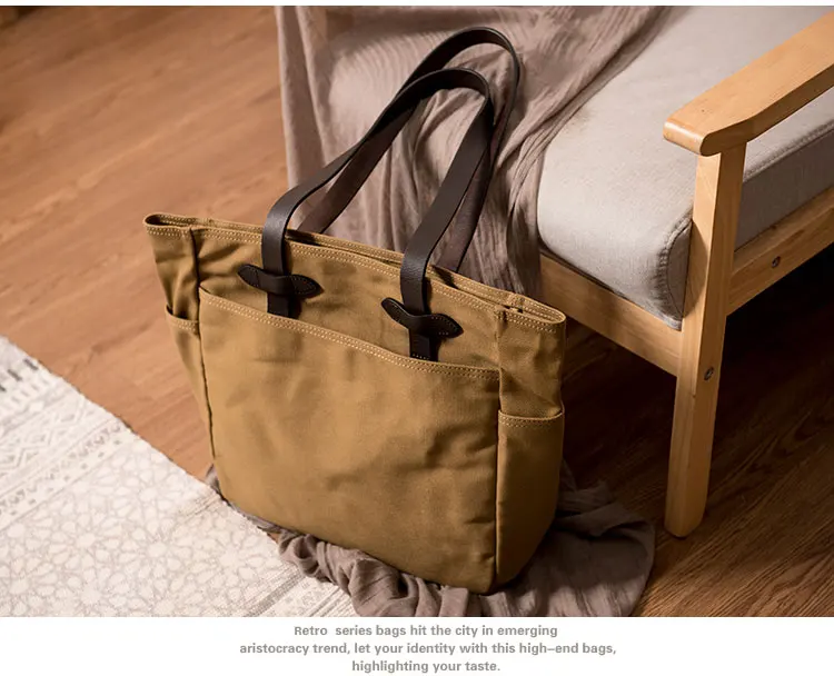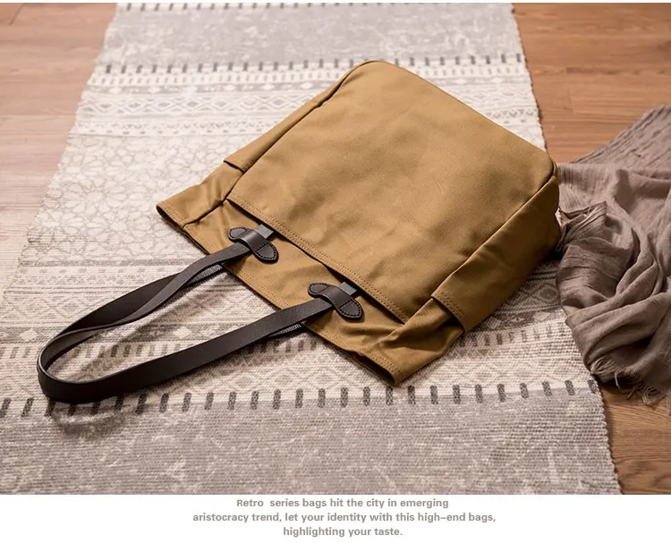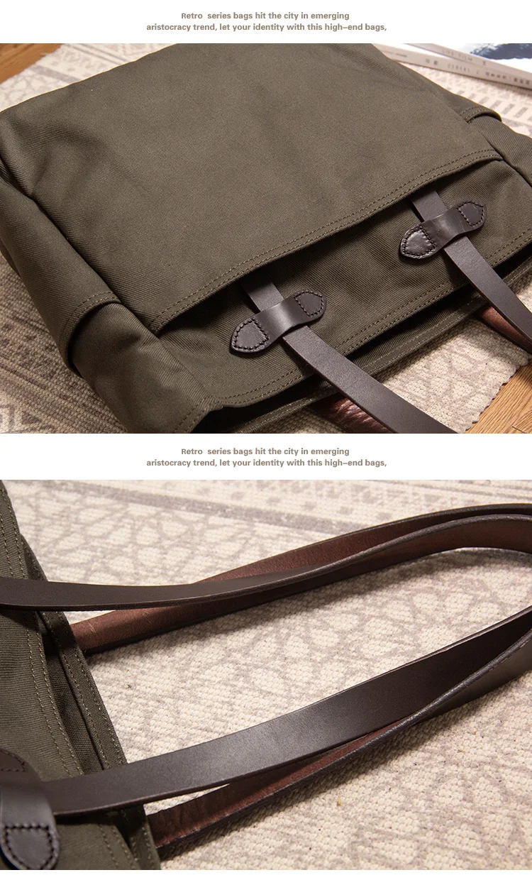 Tailor Brando American Retro 70260 Waterproof Waxed Canvas & Waxed Cowhide Tote Bag Size 45*33*12cm Casual Shoulder Handbag