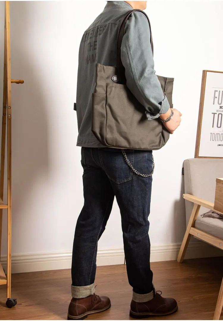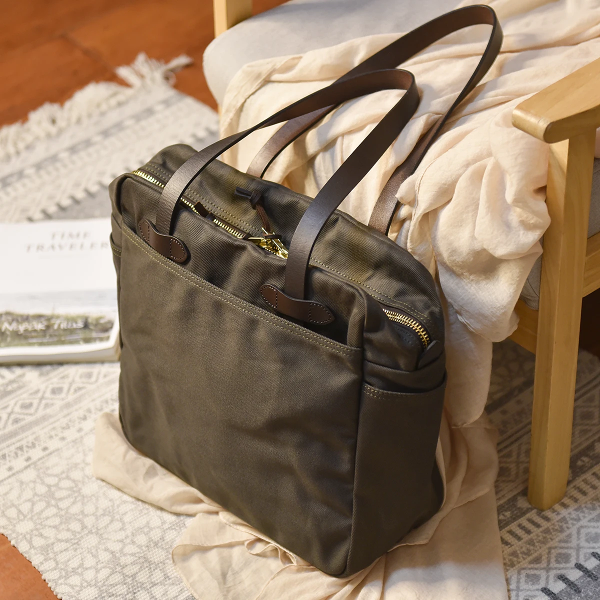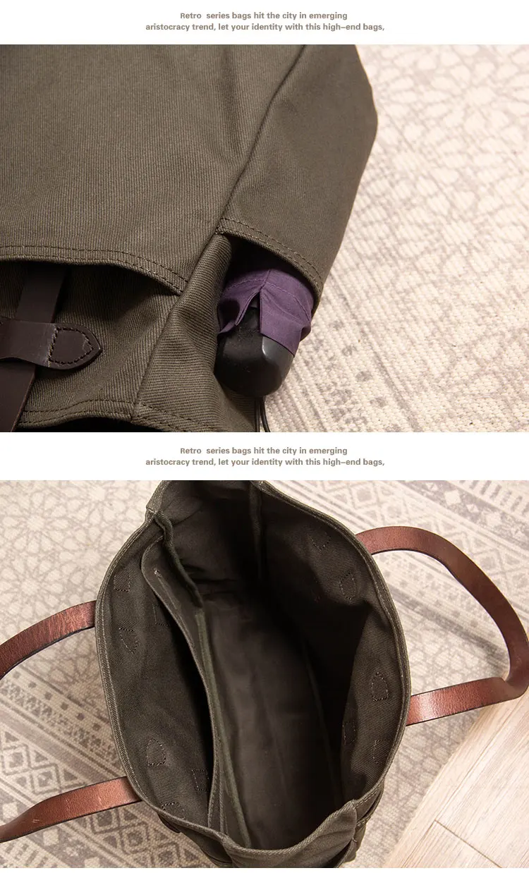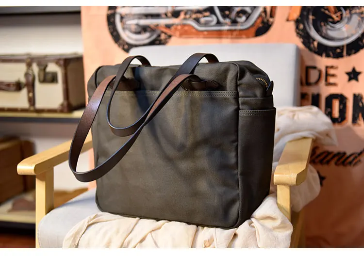Tailor Brando American Retro 70260 Waterproof Waxed Canvas & Waxed Cowhide Tote Bag Size 45*33*12cm Casual Shoulder Handbag