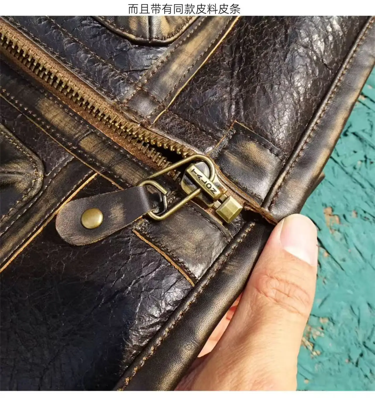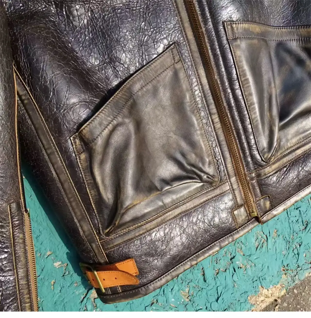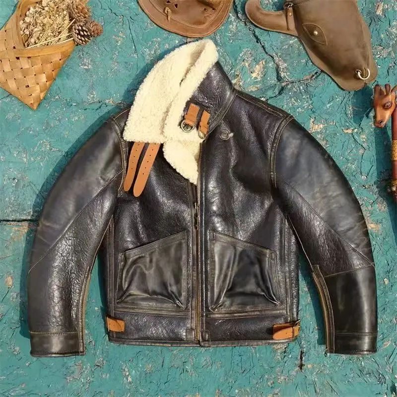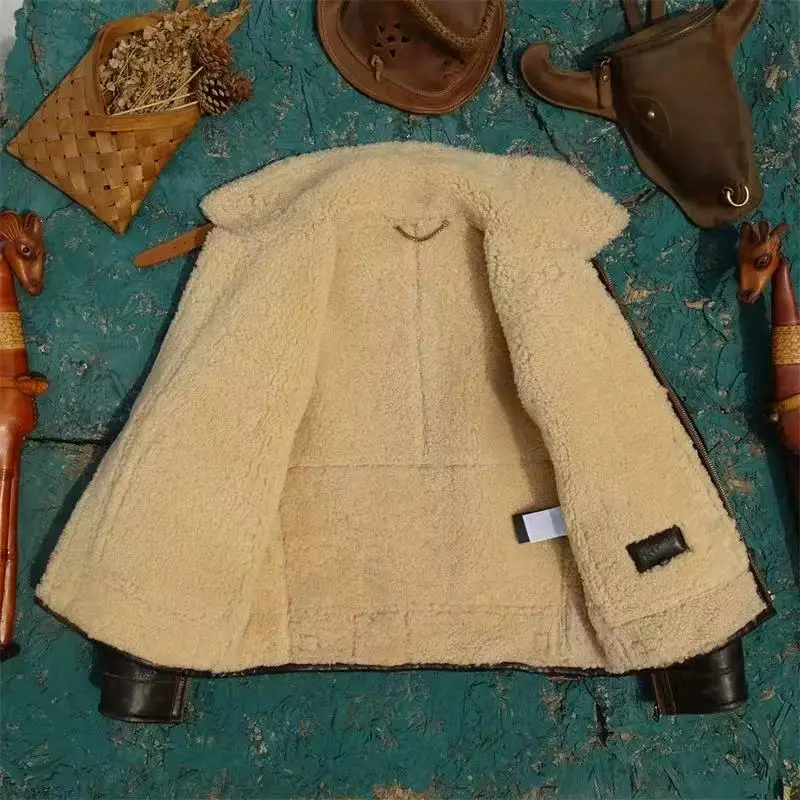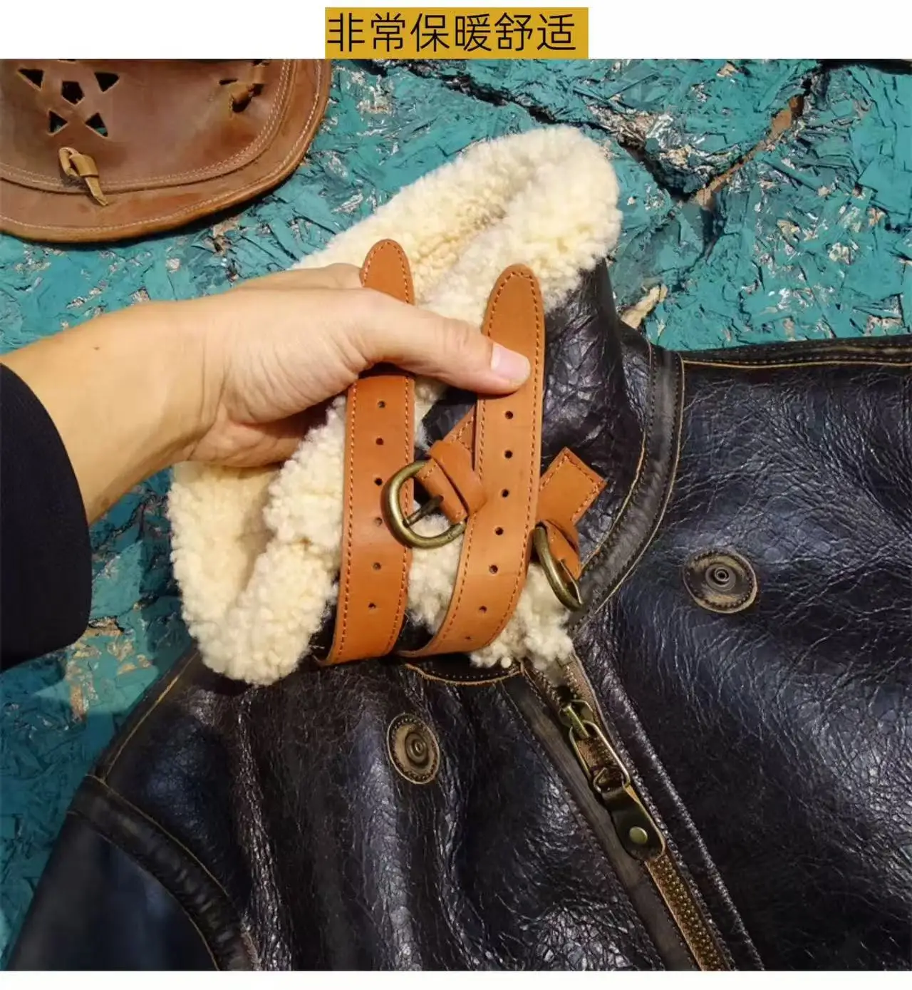 Tailor Brando Turkey Original Sheep Shearling & Vegetable Tanned Tea Core Cowhide Men's Classic Bomber Warm Genuine Fur Jacket