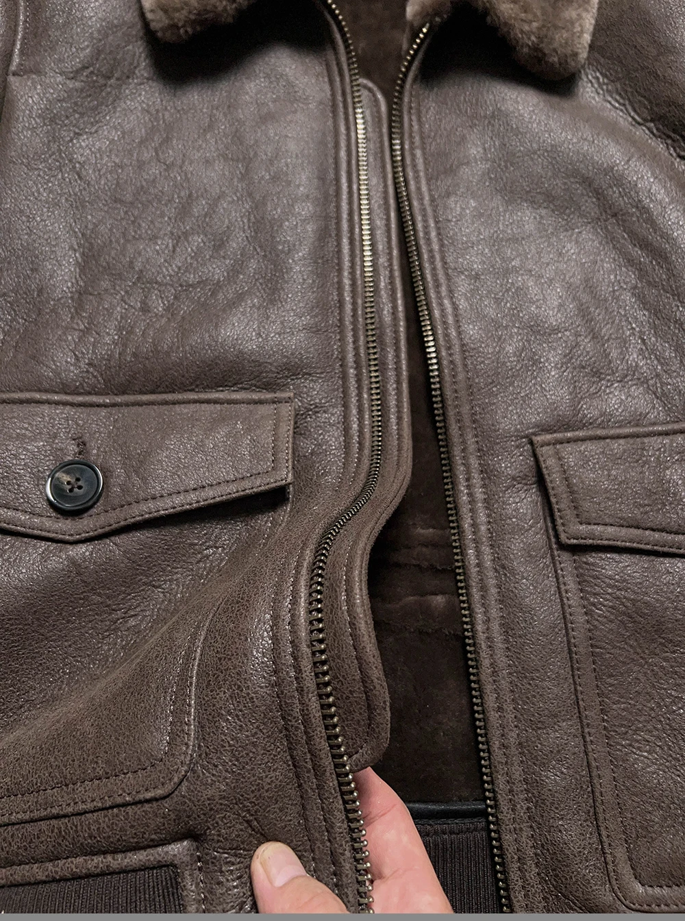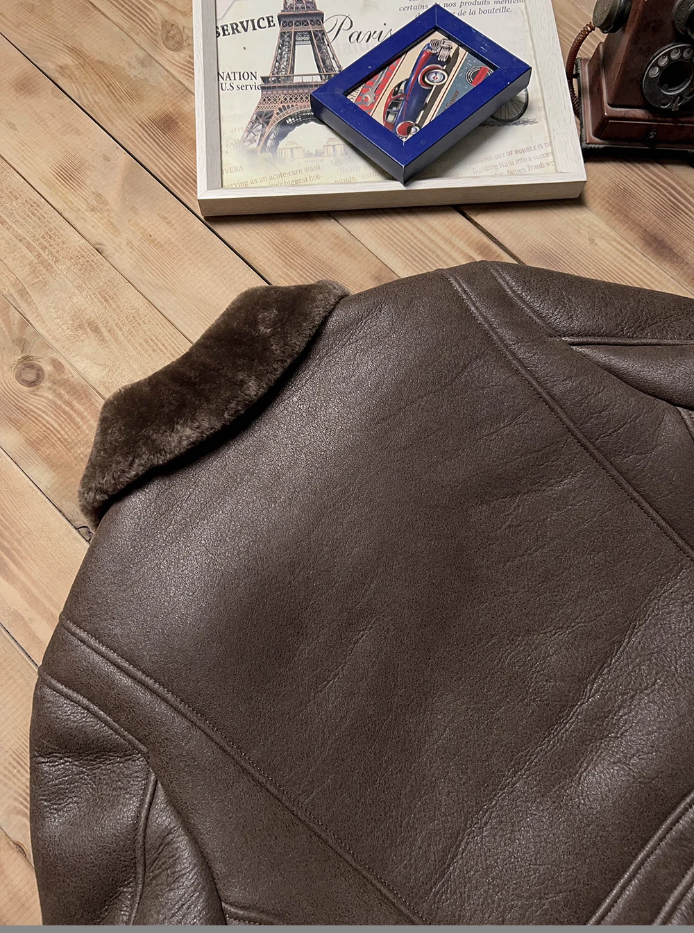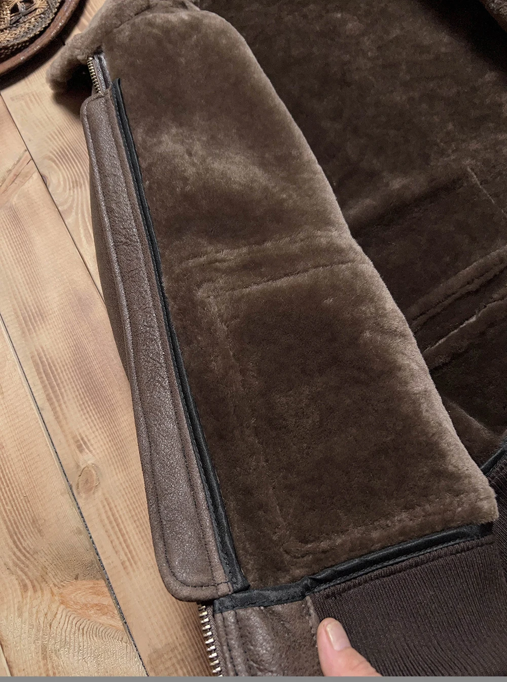 Tailor Brando Turkish Shearling Classic A2 Aviator Jacket Men's Classic Genuine Leather Fur Jacket