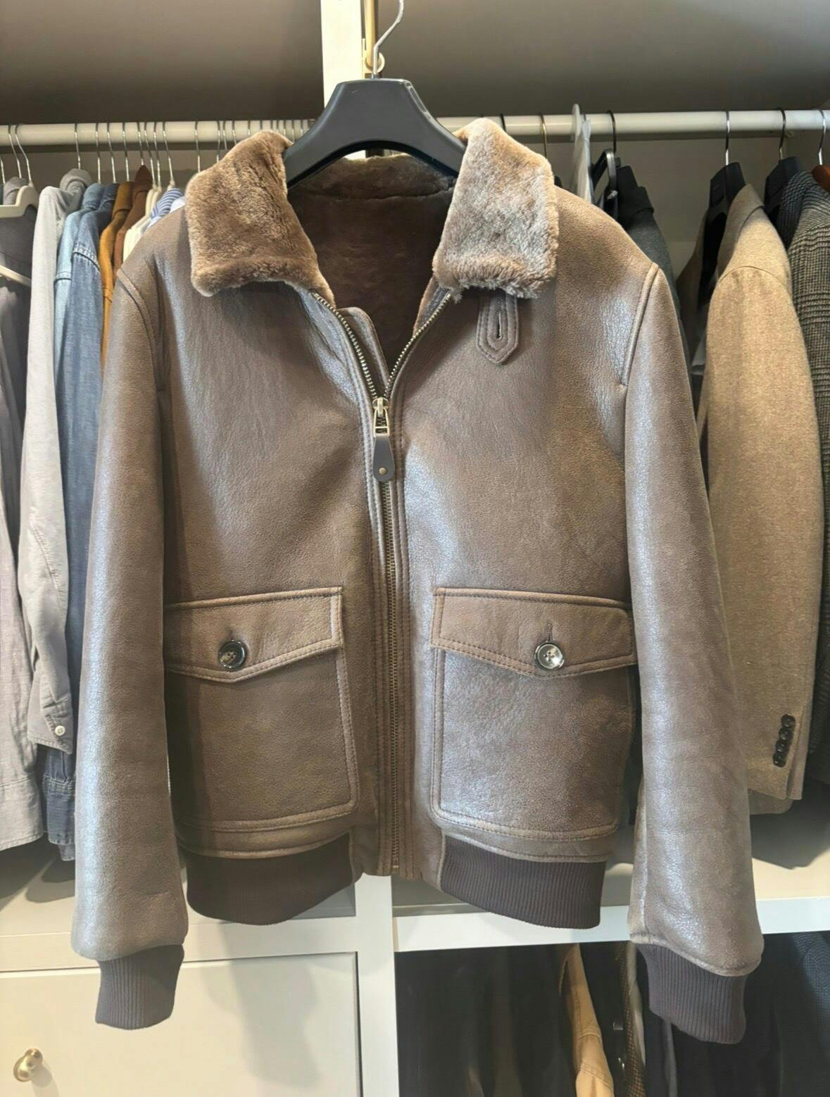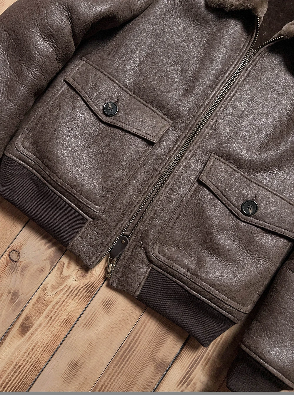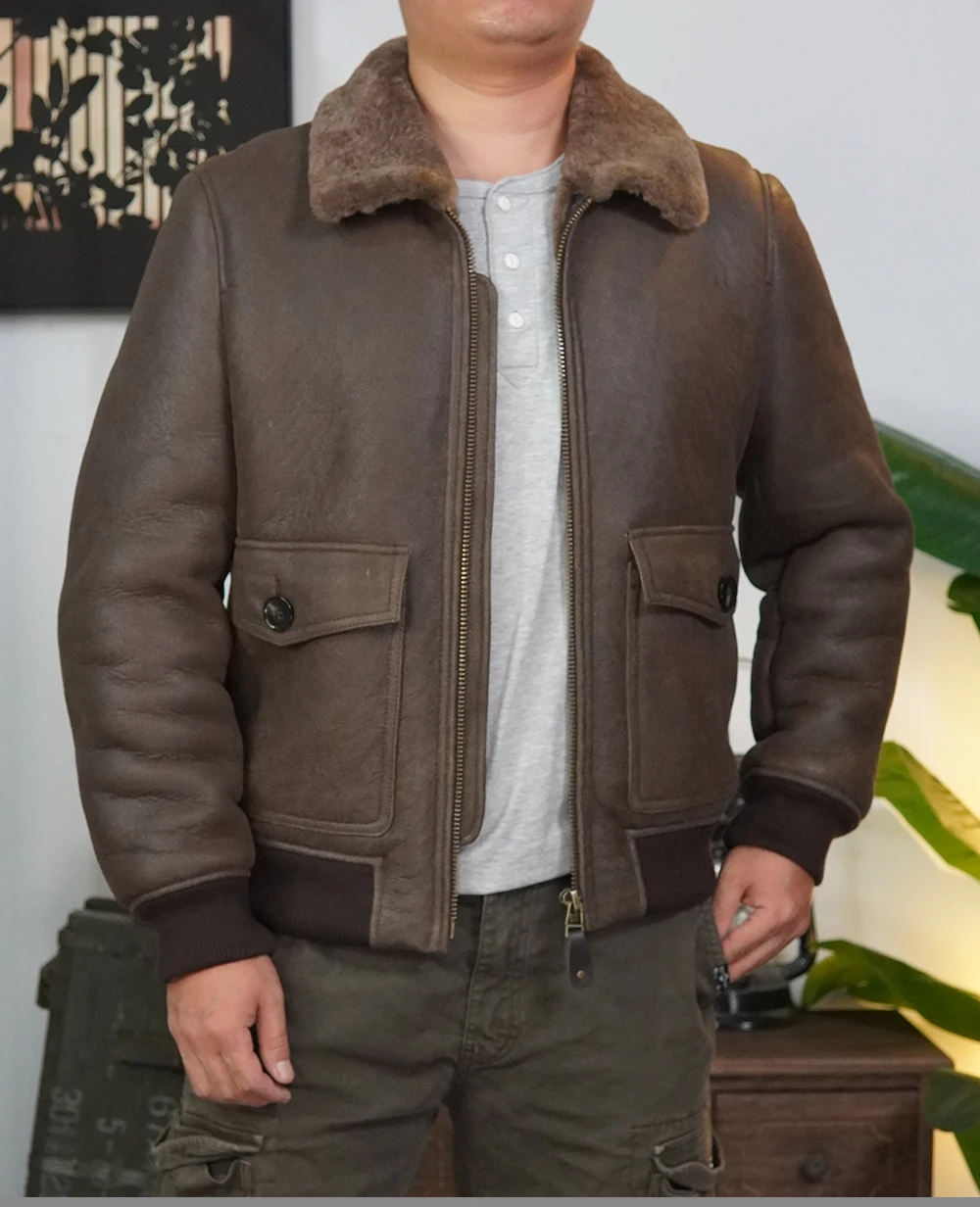 Tailor Brando Turkish Shearling Classic A2 Aviator Jacket Men's Classic Genuine Leather Fur Jacket